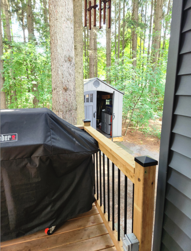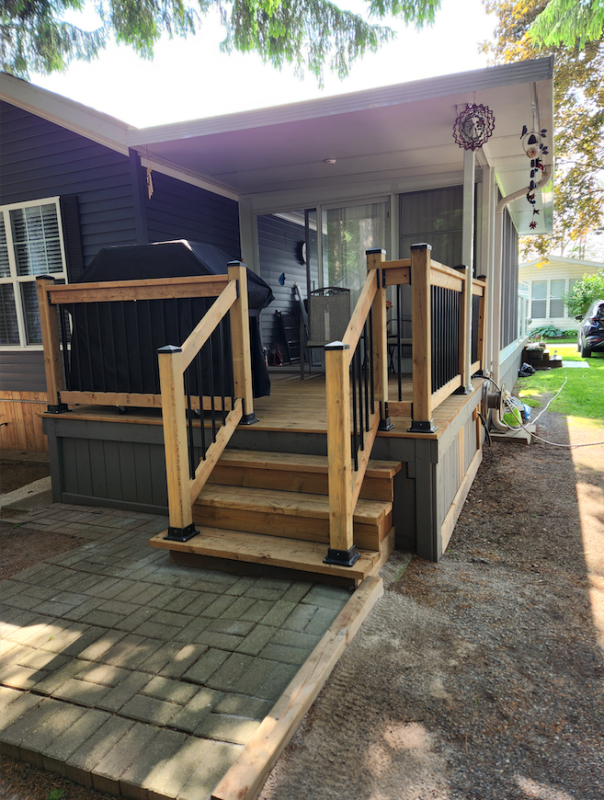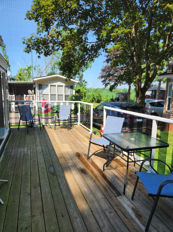 In 2023 a deck was added at the back of the Florida room. The back deck is 10ft by 11ft and is covered. It provides a private place to sit and enjoy the trees as well as a place to BBQ. The 2023 Weber BBQ and two 20 lb propane tanks are included in the sale. There is hydro on the deck.